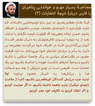 یادداشت 322 : مصاحبۀ تفصیلی استاد پناهیان با فارس دربارۀ نتیجۀ انتخابات